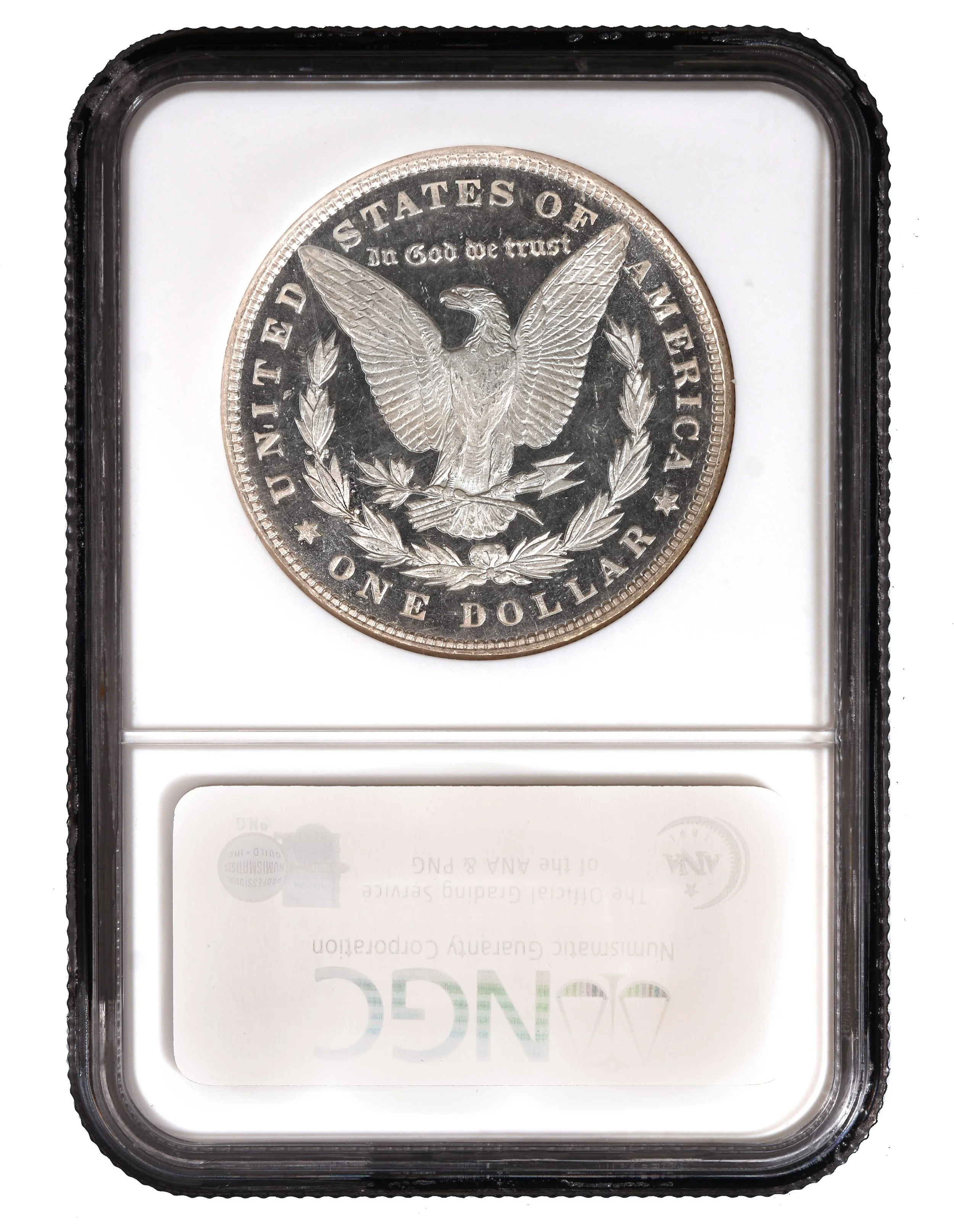 The ONLY 1887-P Morgan in this grade, and only has 1 graded higher in Plus- but it doesn’t have this megawatt ultra cameo frost! You are looking at the finest 1887-P Morgan- its eye-appeal and condition quality are unmatched! Morgan and the Eagle are drenched in frost you normally only see on Proofs from the 1960’s and later. The devices hold zero frost-fade with its even, heavy ultra cameo eye-appeal. The fields are deep, pitch-black, and have the desirable Morgan Dollar mirrored look. This is the 1887-P Morgan Dollar of all 1887-P Morgan Dollars- there is no competition left to beat!